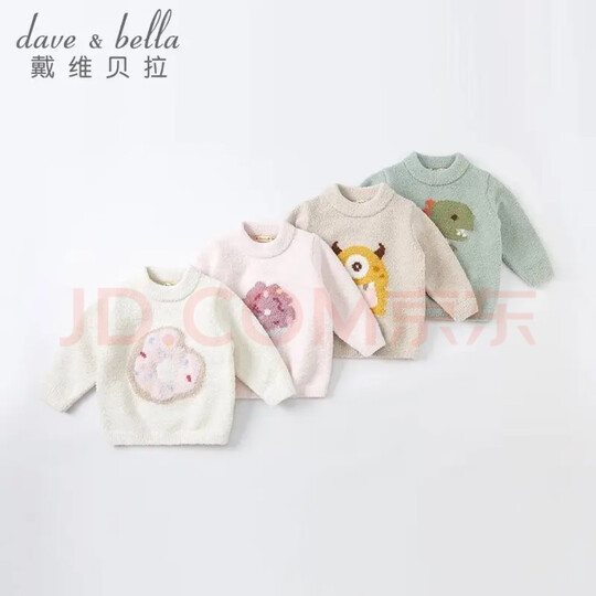 戴维贝拉(DAVE&BELLA)童装雪尼尔针织衫男童儿童毛衣女童冬季婴儿宝宝秋冬女孩男孩冬款 米白DBM19273 90 cm(建议身高80-90cm)