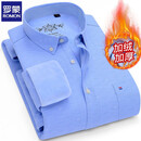 罗蒙(ROMON)加绒加厚男士保暖衬衫牛津纺免烫易打理条纹格子衬衣中年爸爸男装 LM8860 蓝色印花 42(155斤-165斤)