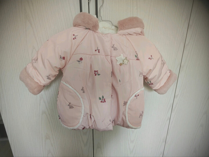 颜值与保暖双在线,女宝冬日刚需! 给95cm的女儿选了100码粉色款,上身效果超惊喜!衣服是那种软乎乎的棉感面料,摸起来厚实但不压身,连帽设计刚好护住小耳朵,风大的时候拉上拉链特别暖。 细节做得很贴心,袖口是松紧的不会灌风,内里走线整齐没线头,宝宝穿脱也能自己拉背后的小按扣。粉色是很正的浅粉,一点不土气,搭配牛仔裤或小裙子都洋气,出门总被问链接。 现在零下几度穿刚好,玩滑梯跑跳也灵活不束缚,洗了一次没起球没变形,现货发货还快,真心推荐给需要给女宝选冬装的宝妈!