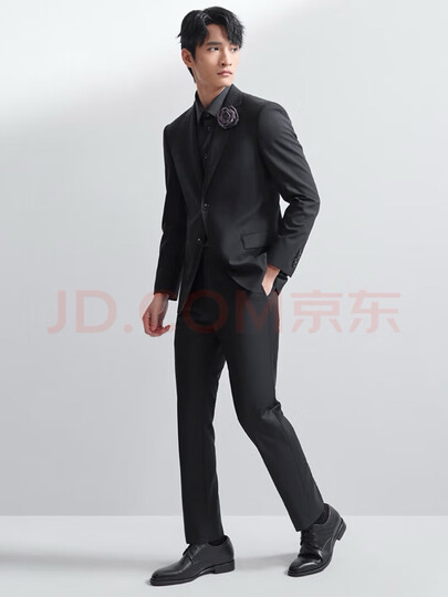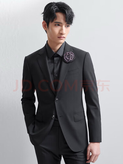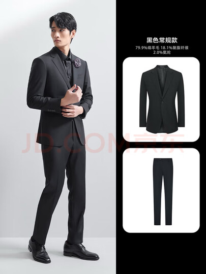 报喜鸟西服套装男装【澳洲羊毛/人生第一套】商务正装通勤西装西裤套装 E款(黑色79.9%羊毛) 48 B(175/100) /请备注腰围或裤子