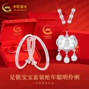 中国黄金银手镯婴儿宝宝长命锁套装蛇年儿童银镯子宝宝银饰新生儿满月礼物 【聪明伶俐】套装约29g-高端礼盒