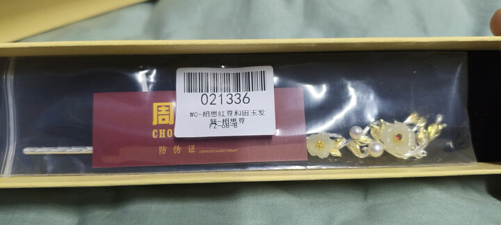 周大金 CHOW TAI KING相思红豆纯银发簪女士和田玉簪子发饰平安夜圣诞礼物送女朋友老婆 相思-和田玉发簪【七仓发货】