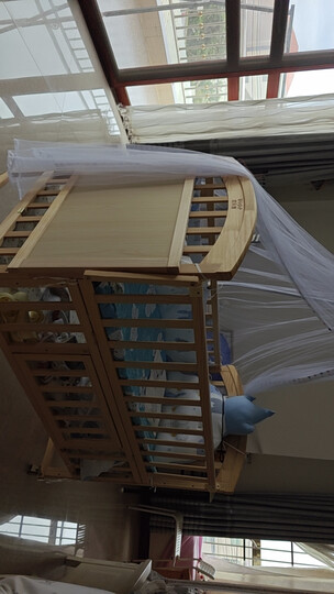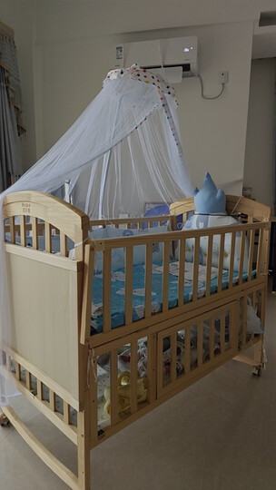 优乐博(YOULEBO)婴儿床实木无漆拼接床多功能可移动宝宝床带护栏新生儿摇篮摇摇床 大床【床围软包+尿布台+蚊帐】 婴儿用品哄睡神器