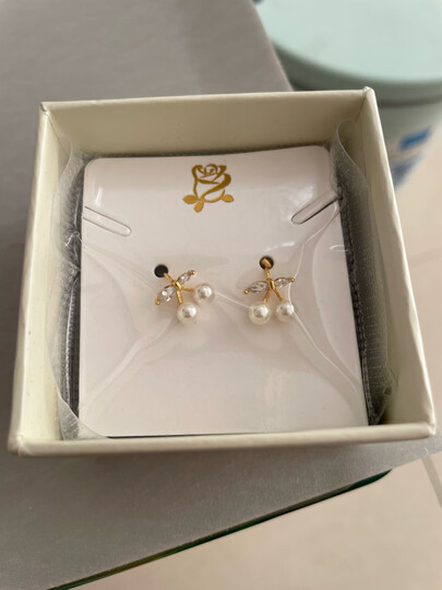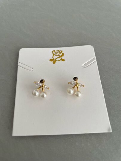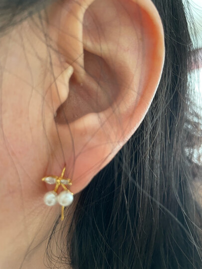樱桃珍珠贝珠银耳环
