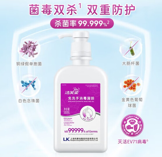 洁芙柔(JIFRO)免洗洗手液 手消毒凝胶家用儿童学生幼儿园酒精杀菌速干消毒液 免洗500ml*3+75%酒精湿巾50抽
