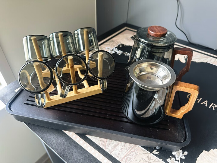 天喜(TIANXI)玻璃茶具套装家用轻奢高档颜值茶盘台客厅喝茶小茶杯功夫煮泡茶壶 【带茶盘】青灰茶壶 12件