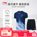 李宁羽毛球服男女排汗吸湿速干凉爽运动比赛套装T恤羽毛球短袖短裤 AATT021 深航舰蓝-1 XL