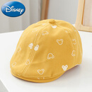 迪士尼(Disney)宝宝帽子春秋夏季儿童英伦贝雷帽男童女童鸭舌帽可爱婴儿画家帽潮 小熊花纹黄色 1-4岁帽围49-54cm 均码