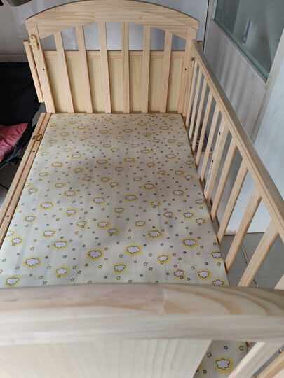 优乐博(YOULEBO)婴儿床实木无漆移动拼接床多功能摇篮摇摇床宝宝尿布台新生儿bb床 床围五件套+尿布台+蚊帐 哄睡觉神器婴儿用品母婴必备