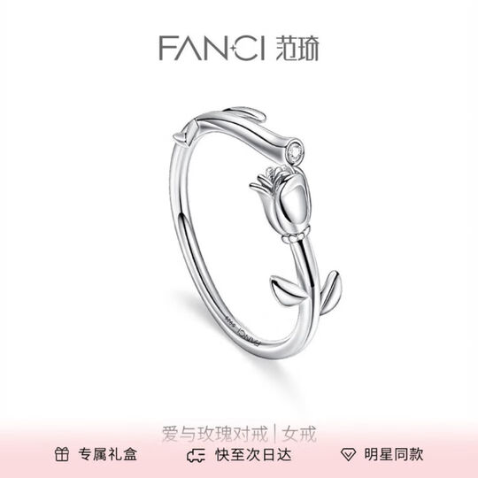 范琦(Fanci)爱与玫瑰对戒情侣戒指活口开口戒银饰生日圣诞节礼物送女友 女戒单只