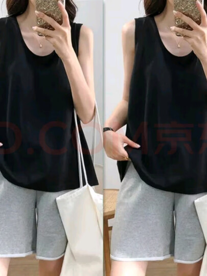 Lauaird 莫代尔/夏季加肥加大码吊带背心女宽松遮肚外穿内搭打底无袖背心 黑色+白色【两件装】 2XL 码【140-170斤】