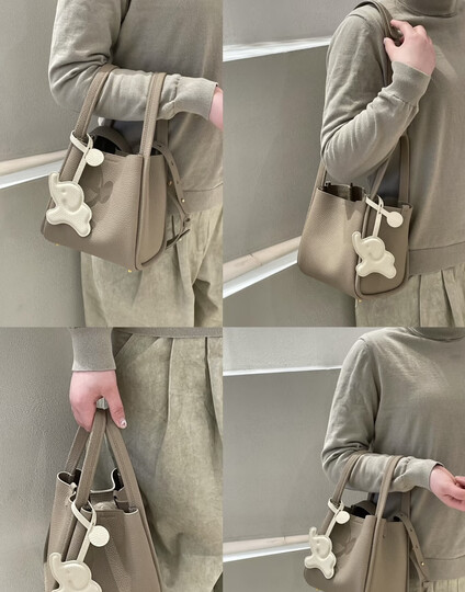 Songmont中号菜篮子系列女设计师款头层牛皮大容量通勤手提包 奶杏色 帆布内胆 预售6天