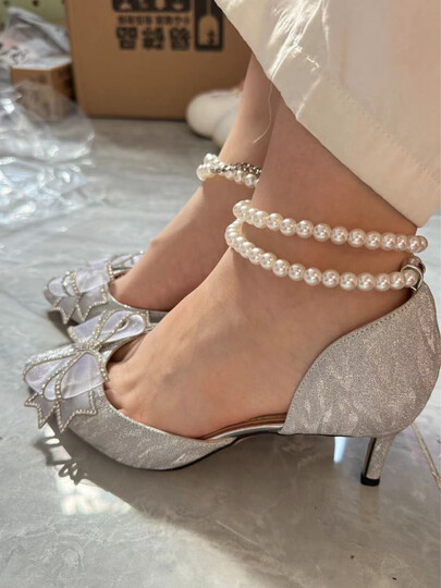 Lily Wei【花嫁】七夕礼物高跟鞋18岁成年礼水晶凉鞋秋季女鞋情人节礼物 银色格利特【跟高6cm】 38