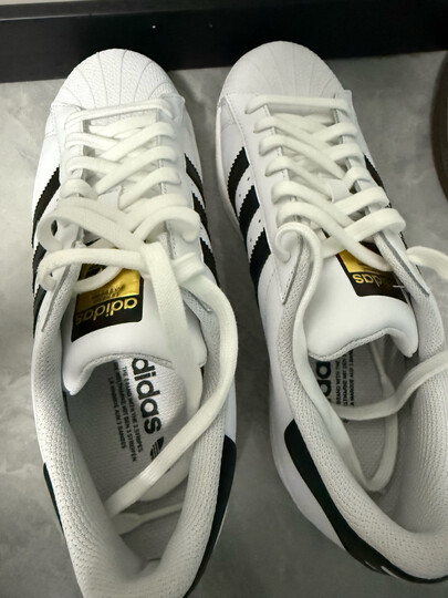 鞋子很好👍,尺码大小合适,做工很精致,经常购买这款阿迪达斯的贝壳头系列,材质好,质量杠杠的,穿着舒适时尚,搭配广泛。👍