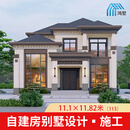 鸿墅农村自建房二层新中式别墅设计图纸两层大气现代风格建筑施工效果 成品图(效果图 水电 结构 建筑)