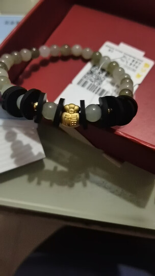 周六福(ZLF) 金镶玉手链女时尚黄金柔雅福袋和田青玉手串礼物 手串