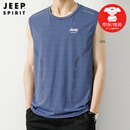 吉普(JEEP)冰丝背心男夏季薄款外穿健身透气坎肩上衣男士宽松速干无袖背心潮 灰蓝色 2XL (建议145-165斤)