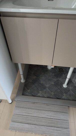 家里装修后,洗脸台地面与地板间有个高低差,在网上搜索了很久,才找到这款室外地板(防水),没想到收到货,很是惊喜了一下,摆放后刚刚好,颜色款式大小高低都很合适,爱了。