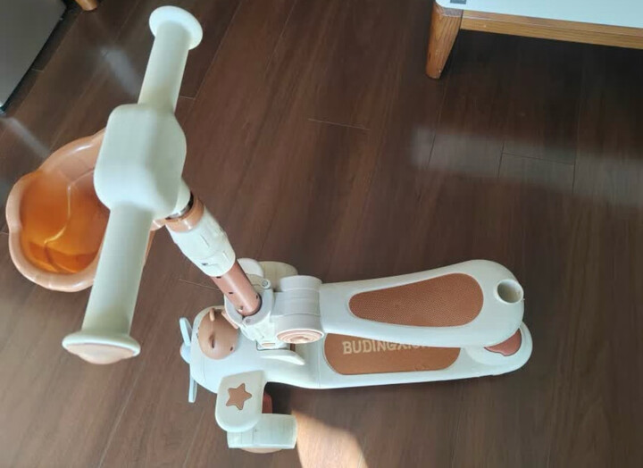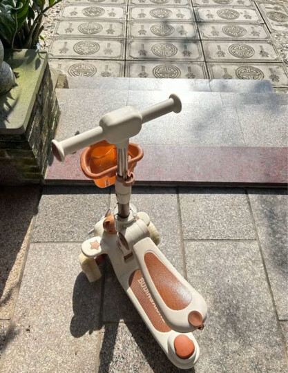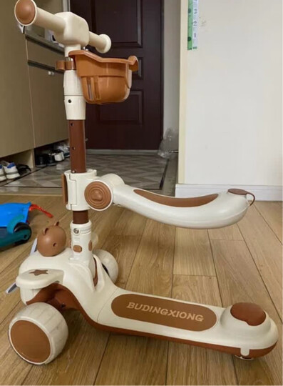 布丁熊(Budingxiong)儿童滑板车1-3岁小孩踏板车可坐4-6幼儿滑滑车三合一宝宝车溜溜车 咖色熊【折叠带座+音乐+推杆】 一周岁生日礼物男孩滑板车防侧翻