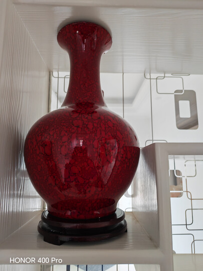 收藏天下景德镇陶瓷器新中式红色花瓶办公室客厅酒柜玄关博古架摆件赏瓶 中国红单瓶+底座39cm