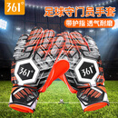 361°守门员手套带护指乳胶防滑耐磨成人儿童训练足球手套守门员装备 黑橙 7号 手掌17-18CM