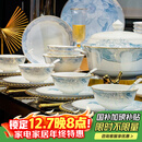 洛威景德镇陶瓷餐具套装家用中式轻奢高级感乔迁餐具套装陶瓷碗盘组合 蓝莲花56头【超值配置】