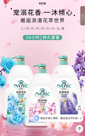 花世界(VCNIC)花世界花萃1L沐浴露24小时持久留香女士男士保湿补水保湿 蔷薇-保湿莹润 1L