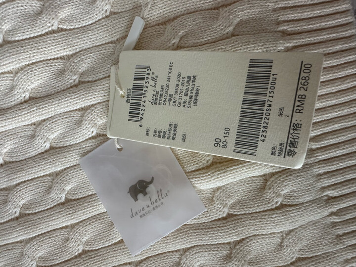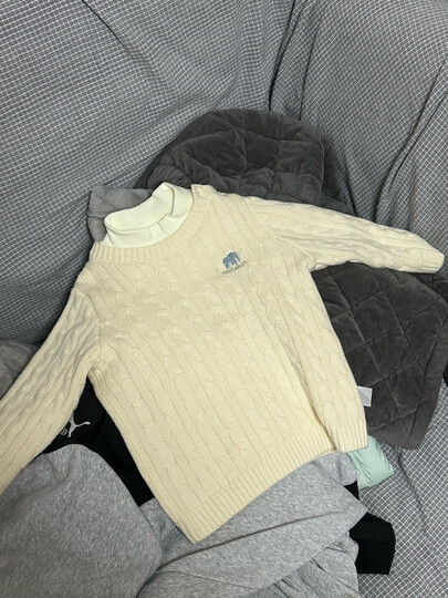 戴维贝拉(DAVE&BELLA)儿童毛衣男童上衣套头衫中大童针织衫女童打底衫秋冬新款宝宝衣服 米色【DB4238220】 90 cm(建议身高80-90cm)