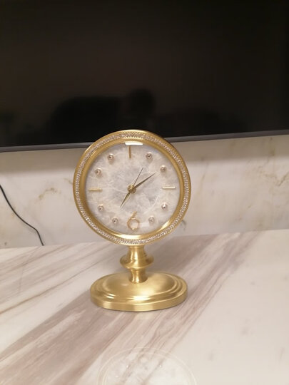 铜大师2025款黄铜贝壳台式高颜值钟表桌面摆放式创意摆件时钟台钟 8108镶钻边-天然贝壳盘-电波机芯