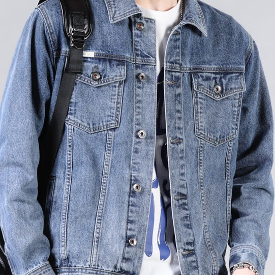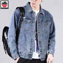 AEMAPE高端苹果牛仔外套男士春秋季2025美式复古潮牌休闲工装夹克男上衣 浅蓝色 XL (125-140斤)