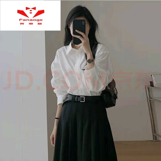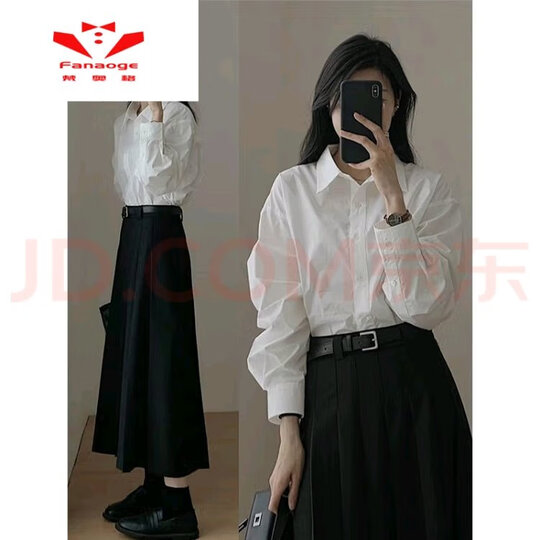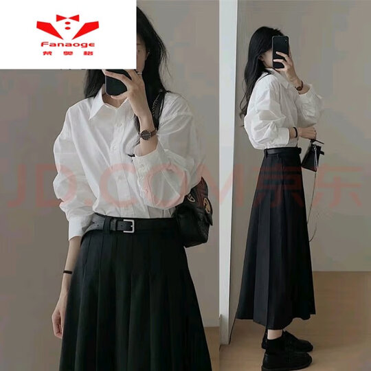 梵奥格(FANAOGE)新款连衣裙女装2025年秋冬季法式轻熟高级感职业衬衫两件套套装裙 白色衬衣+黑色裙子 S 【建议80-95斤】
