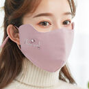 纯棉口罩女冬季保暖加厚韩版护眼角棉布口罩加大透气骑行防尘防寒 蝴蝶结粉色