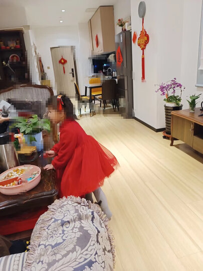 裙子有绣花,质感特别好,质量也很好,就是裙子下摆的纱每次洗完往上卷,要一点一点手动拉展,前面是古典绣花纽扣,特别棒