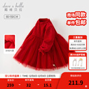 戴维贝拉(DAVE&BELLA)女童连衣裙中国风儿童网纱裙秋冬新年童裙宝宝裙子中大童公主裙 中国红【现货】 110 cm(建议身高100-110cm)