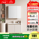 九牧(JOMOO)浴室柜洗脸盆柜一体盆陶瓷铝合金洗手盆柜组合洗漱盆无龙头A2736 奶油白 经典 镜背收纳|防潮 80cm