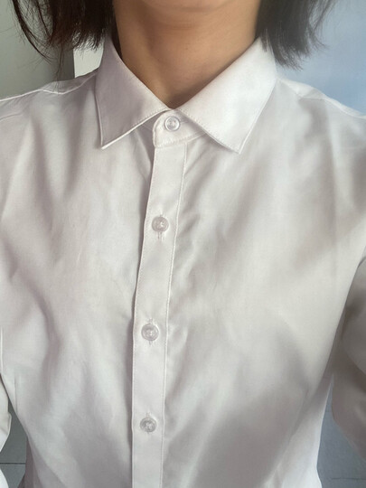 我大约88斤左右,买的大一号的,感觉买大了,标准号应该就差不多。穿着非常舒服,挺柔软的,也挺漂亮的,然后也不容易走光,我试了一下穿黑色内衣也不是特别明显,白色就更不用说了。感觉,唯一不足的地方,就是开第一个扣子以后就不是很笔挺。