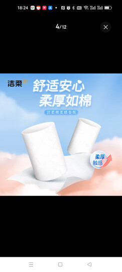 洁柔无芯卷纸棉柔感Face加厚4层75g卫生纸厕纸4D立体压花冲水速溶家用 3提30卷