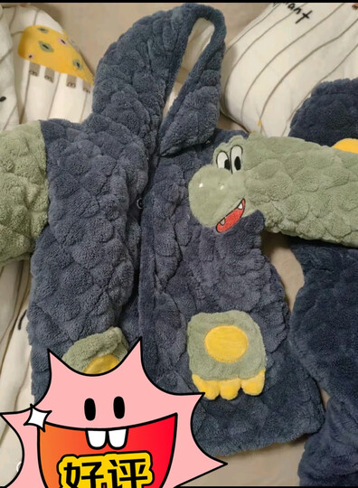 迪士尼(Disney)特厚三层夹棉睡衣中大童儿童加厚冬季法兰绒男童家居服珊瑚绒套装 H508-绿袖龙 120 14建议身高110-120cm