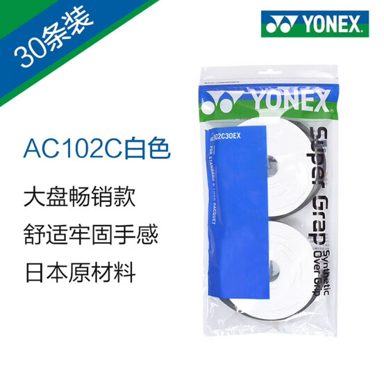 YONEX尤尼克斯AC102C大盘手胶30条装薄款防滑吸汗带羽毛球拍网拍外柄皮 1袋白色 AC102C30EX 30条装 30条装