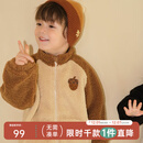 papa爬爬冬季儿童外套插肩袖男女宝宝加绒保暖立领上衣洋气可爱 咖啡棕色 90 cm