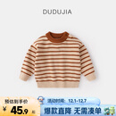 嘟嘟家宝宝毛衣冬装儿童套头衫童装上衣男童条纹毛线衣女童针织衣服冬款 米杏黄条纹 100