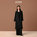 三只小山羊【杨幂同款】中长老钱风100纯羊绒大衣双排牛角扣冬季大衣女 黑色 M