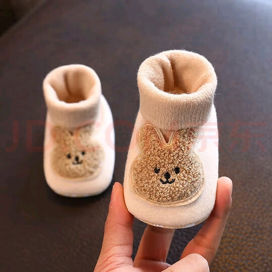 兔兔大文新生婴儿鞋子秋冬季0-1岁学步鞋6-12个月男女宝宝棉鞋袜脚套软底 小熊咖(棉布内里) 内长13cm(适合0-12个月)