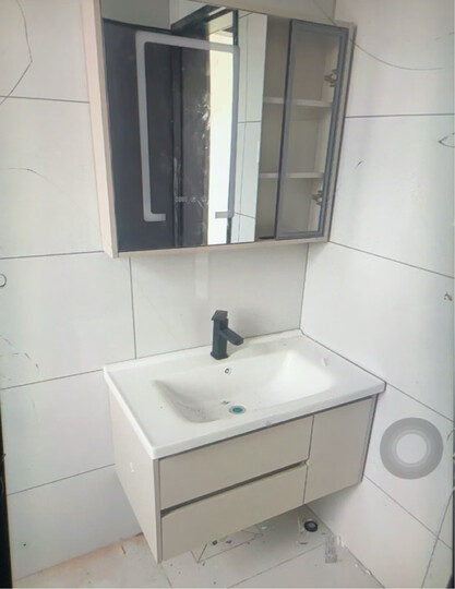 智能玻璃镜柜+陶瓷一体盆 80cm