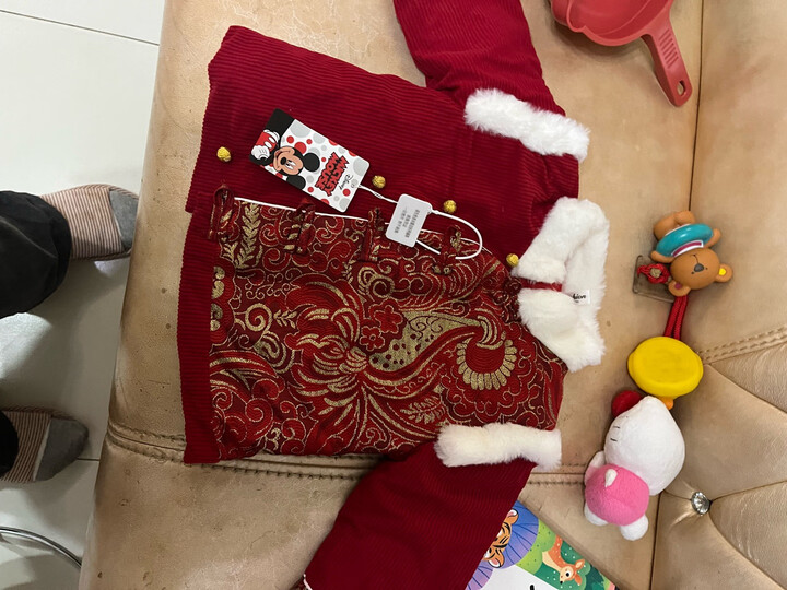 双十一活动5折买的,京东支付的时候打5折,很划算!囤着给宝宝过年穿的拜年服!现在还没穿,不过摸着质量还蛮好的,款式也不错!