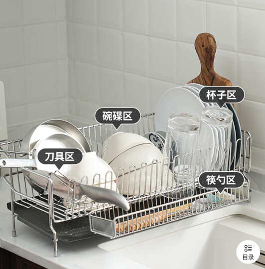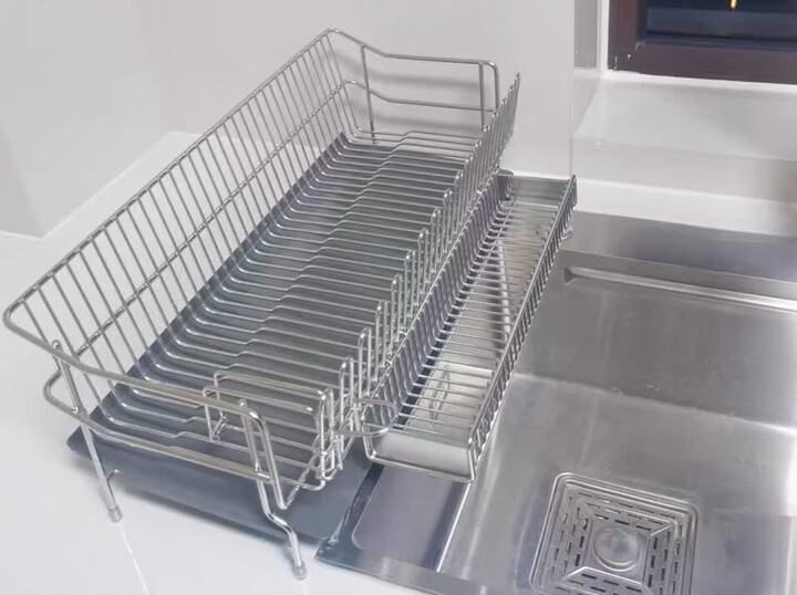 这款霜山碗筷沥水架真的超实用!设计简洁不占地,双层结构能同时沥干碗盘和筷子,不锈钢材质结实耐用,底部接水盘可拆卸清洗,完全不用担心积水发霉。碗格间距合理,连大汤碗也能稳稳放置。最惊喜的是边缘导流槽设计,水滴会自然流入托盘,不会弄湿台面。安装时不用工具,折叠设计收纳也方便。