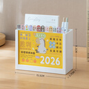 时代良品创意卡通台历笔筒二合一2026年新款日历马年活动月历办公室桌面摆件记事本儿童打卡本 白色(25年当月-26年12月)