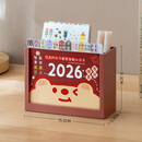 时代良品创意卡通台历笔筒二合一2026年新款日历马年活动月历办公室桌面摆件记事本儿童打卡本 红色(25年当月-26年12月)