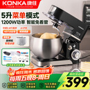 康佳(KONKA)厨师机家用和面机全自动揉面机小型蛋清奶油打发器多功能打蛋器料理搅拌机智能触控5升KCSJ-0503-A 【顶部触控】黑色 5L 1200W-吐司面包礼包