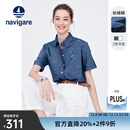 Navigare意大利小帆船纯棉短袖衬衫女士夏季宽松碎花衬衣休闲五分袖上衣女 方钠石蓝 XL